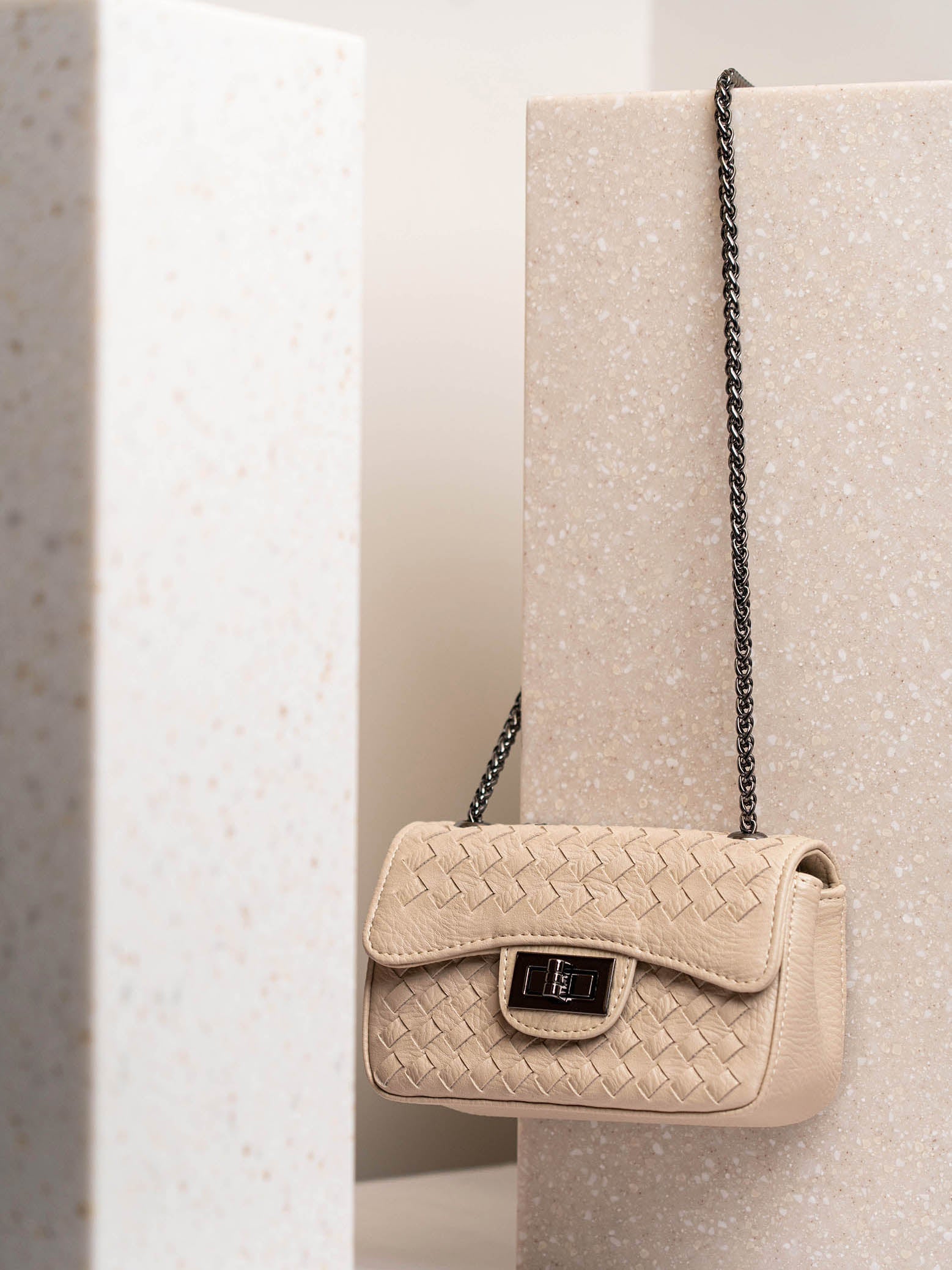 Womens Cream Casual Textured Shoulder Bag With Zip Lock