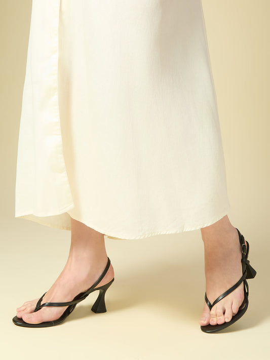 Womens Black Ethnic Solid One Toe Flat Slip-On Sandals