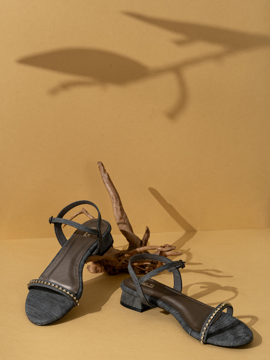 Womens Brown Party Wear Solid Pattern Round Toe Block Heel Sandals
