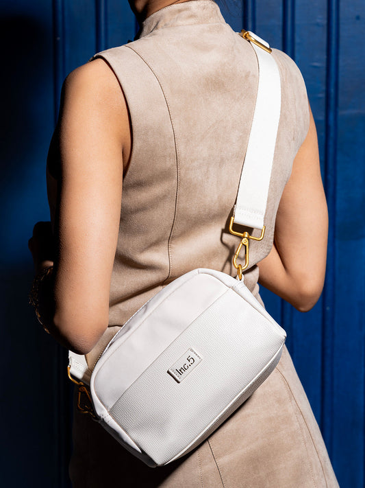 Womens Beige Sling Bag With Zip Lock For Party Use