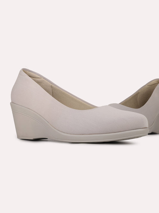 Womens Beige Party Wear Solid Pumps