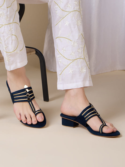 Womens Golden Ethnic Wear Embellished Round Toe Block Heel Sandals