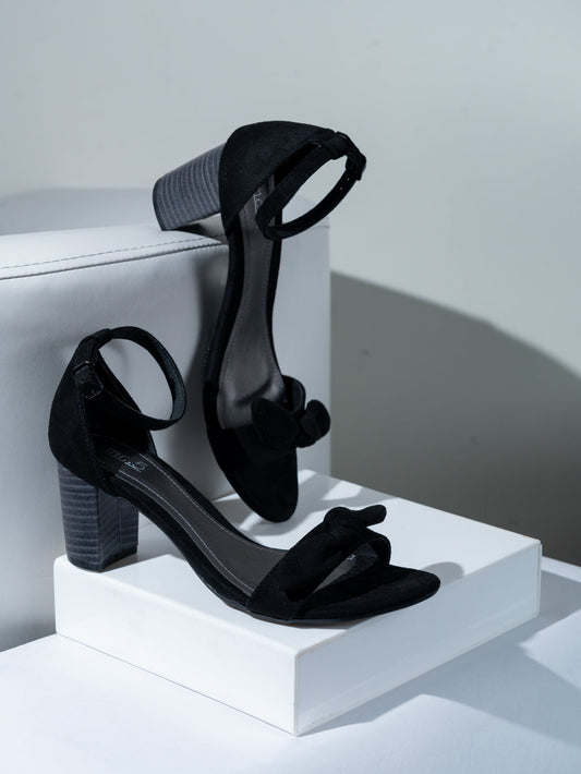 Women Black Party Wear Embellished Round Toe Block Heel Sandals