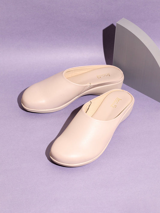 Womens Cream Casual Solid Round Toe Wedge Heel Sandals