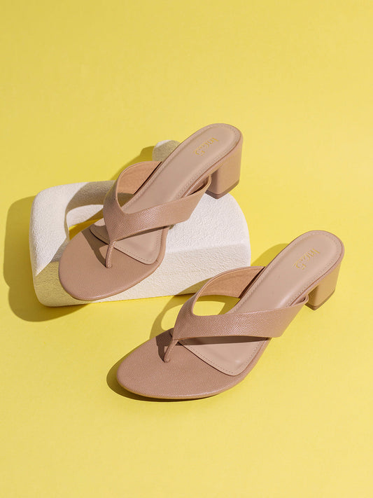 Women Beige Party Wear Solid Round Toe Platform Heel Sandals