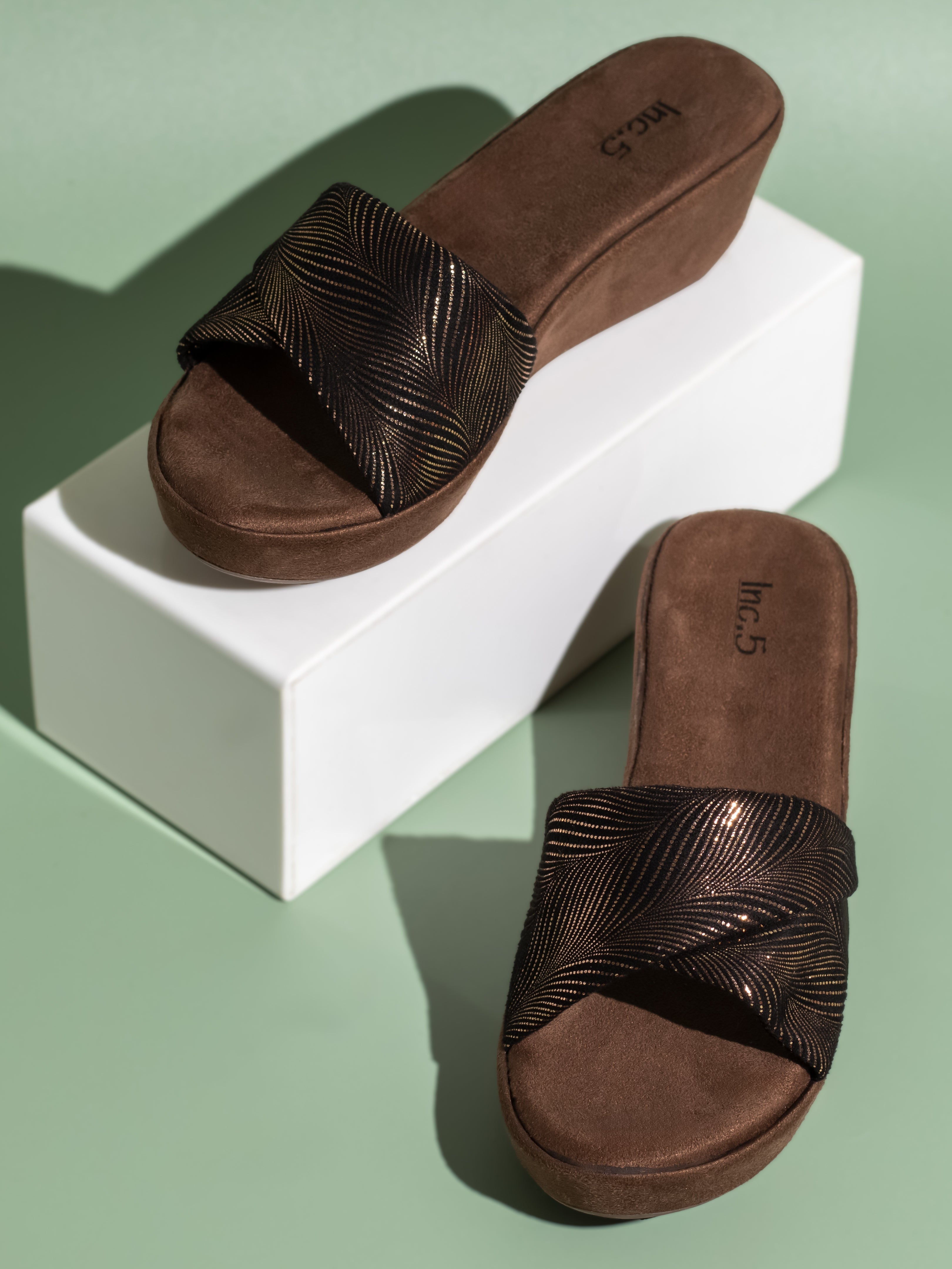 Womens Golden Party Wear Solid Round Toe Wedge Heel Sandals