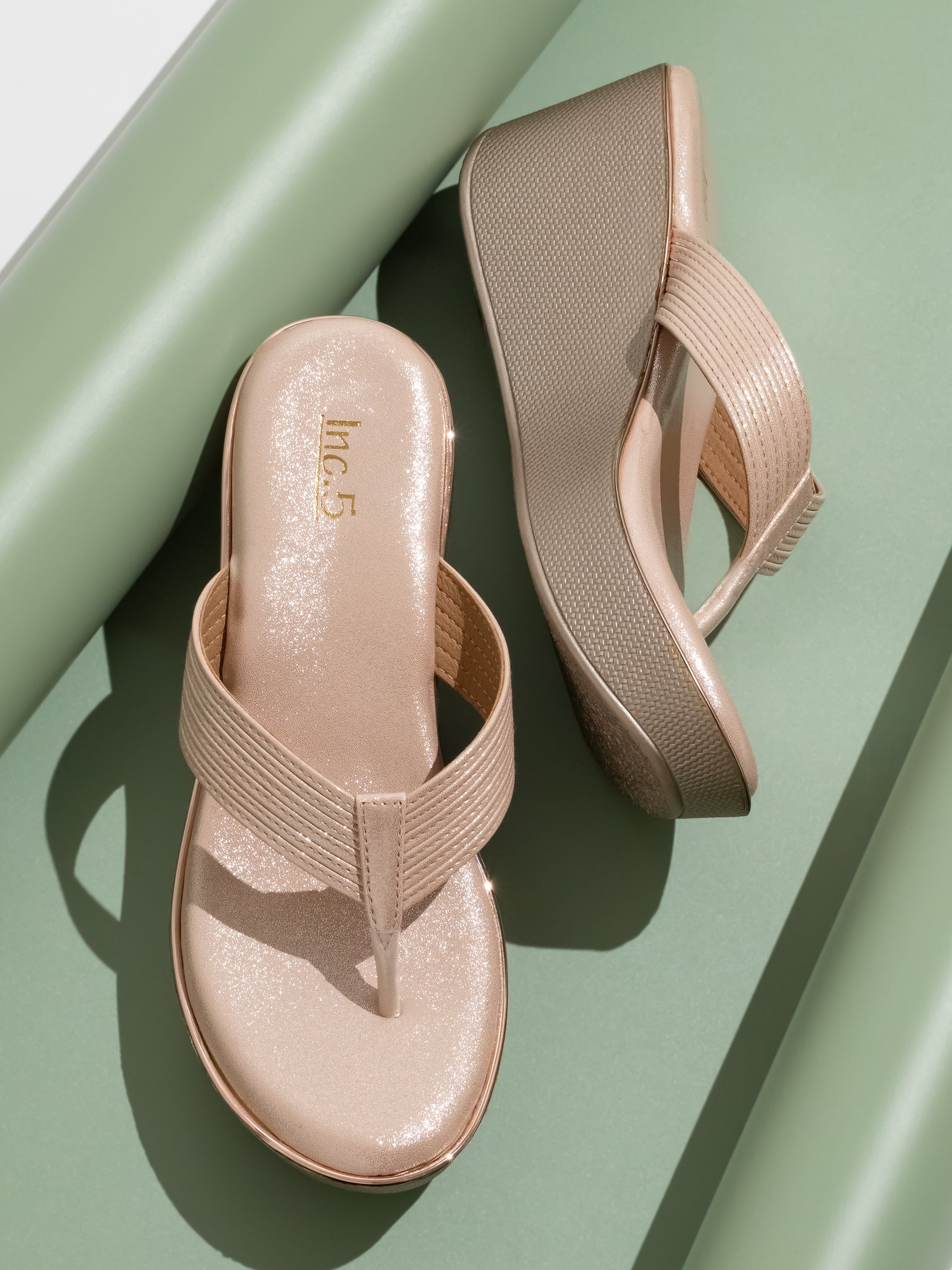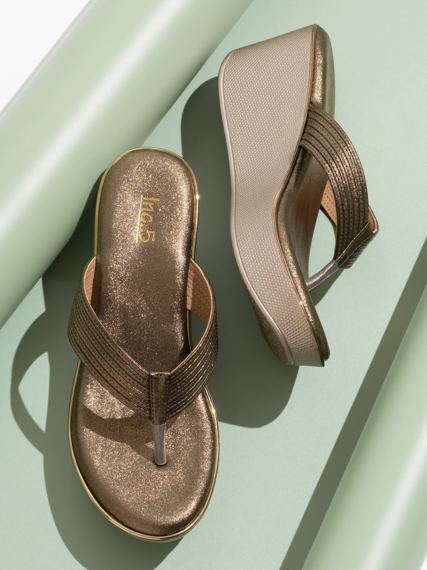 Womens Golden Party Wear Solid Pattern Wedges Sandals