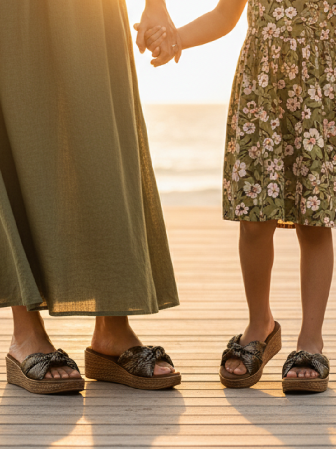 Women Black Metallic Print Wedge Sandals With Knot Detail