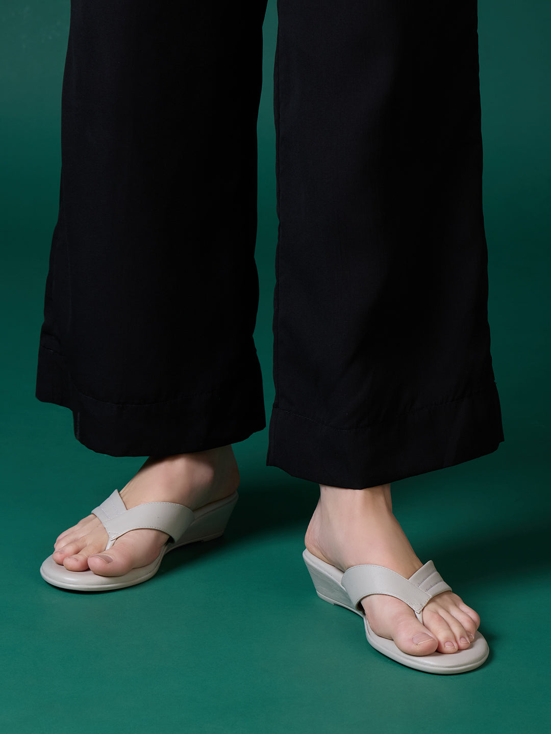 Women Grey Casual Solid Round Toe Wedge Heel Sandals