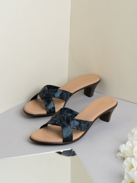 Women Black Ethnic Solid Round Toe Wedge Heels
