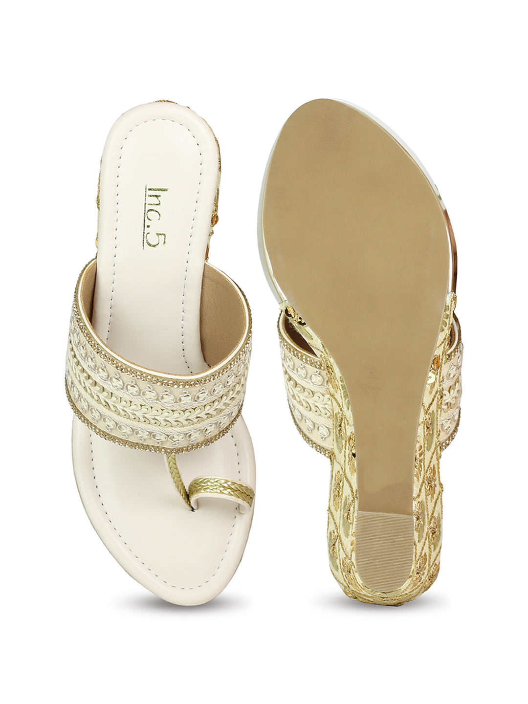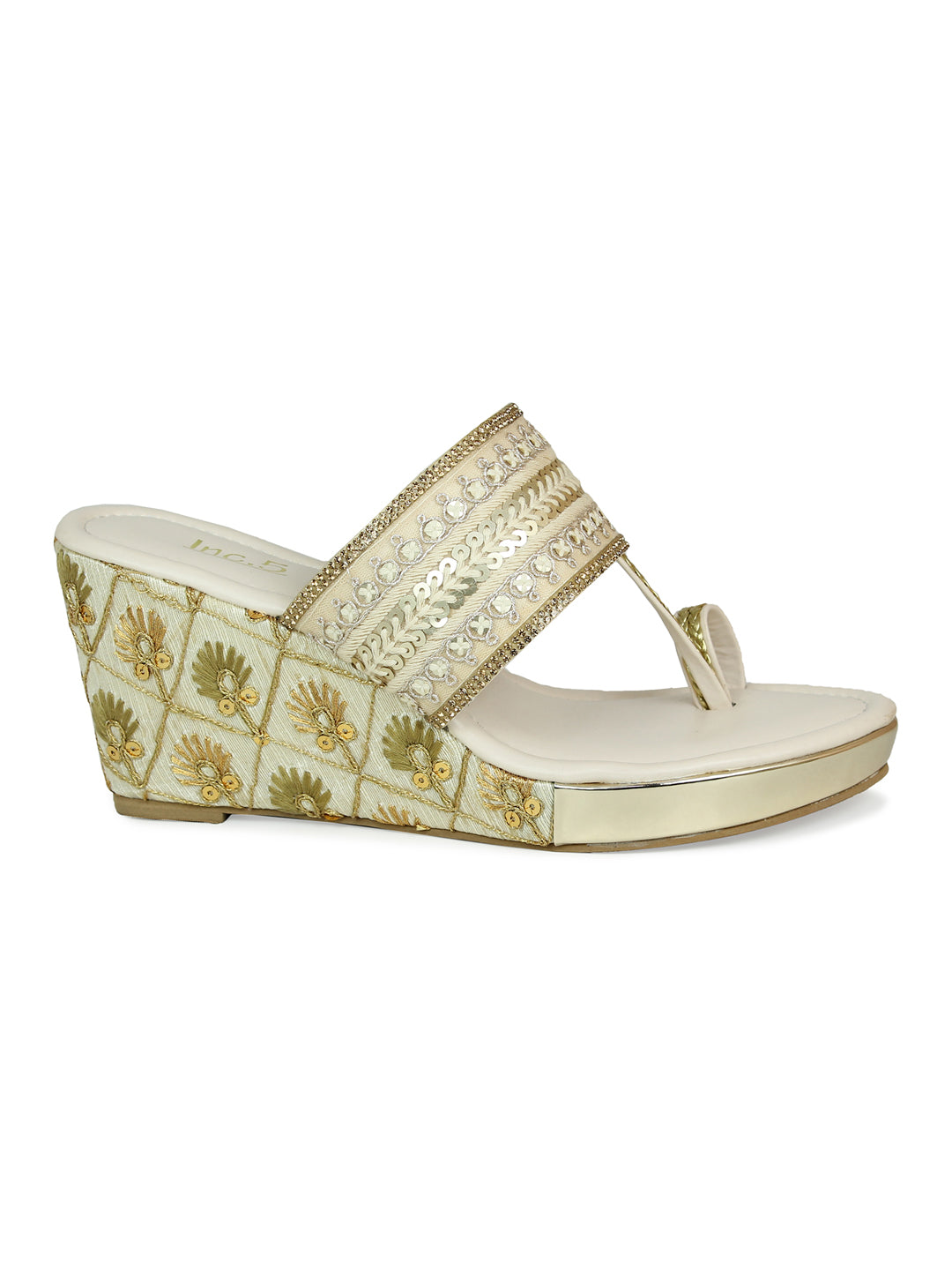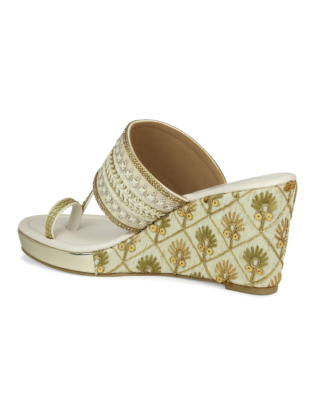 Women Beige Embellished Ethnic Wedge Sandals