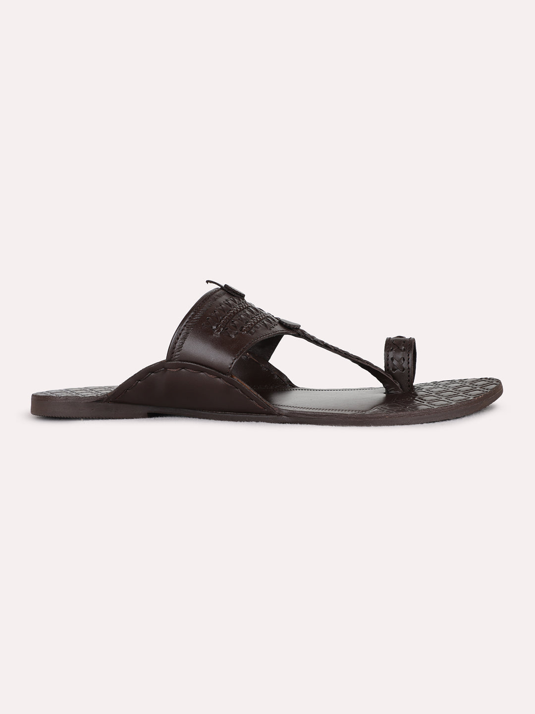 Mens Brown Casual Solid Pattern One Toe Flats Slip-On Sandals