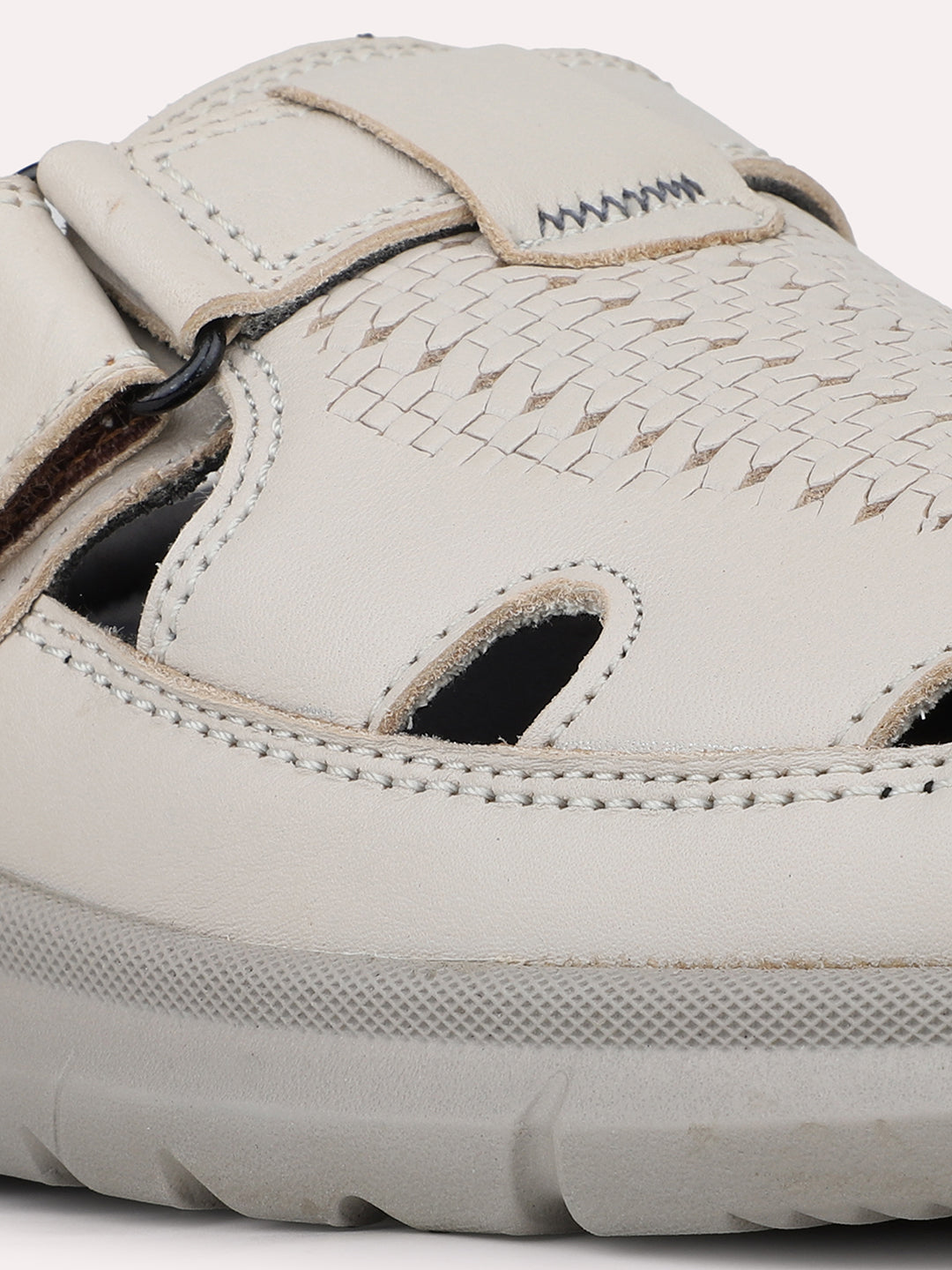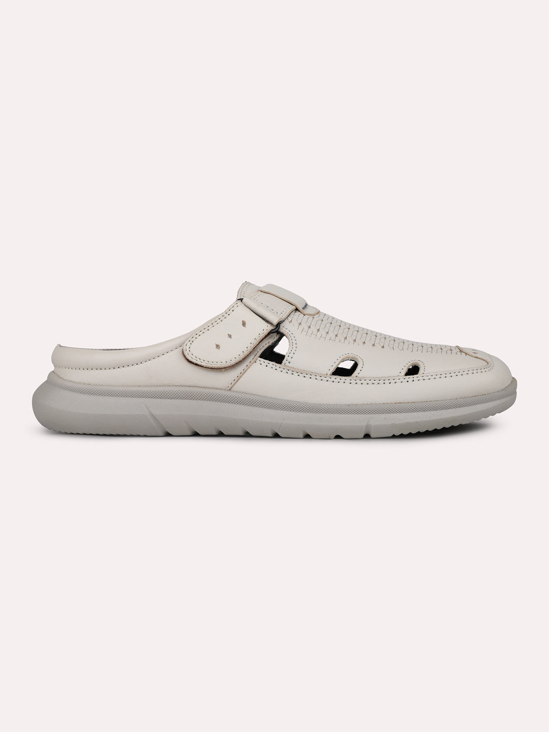 Product description:-Keep it cool and fresh with these white solid round-toe casual sandals |