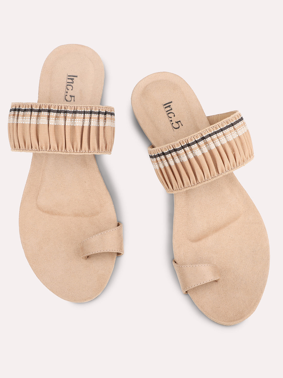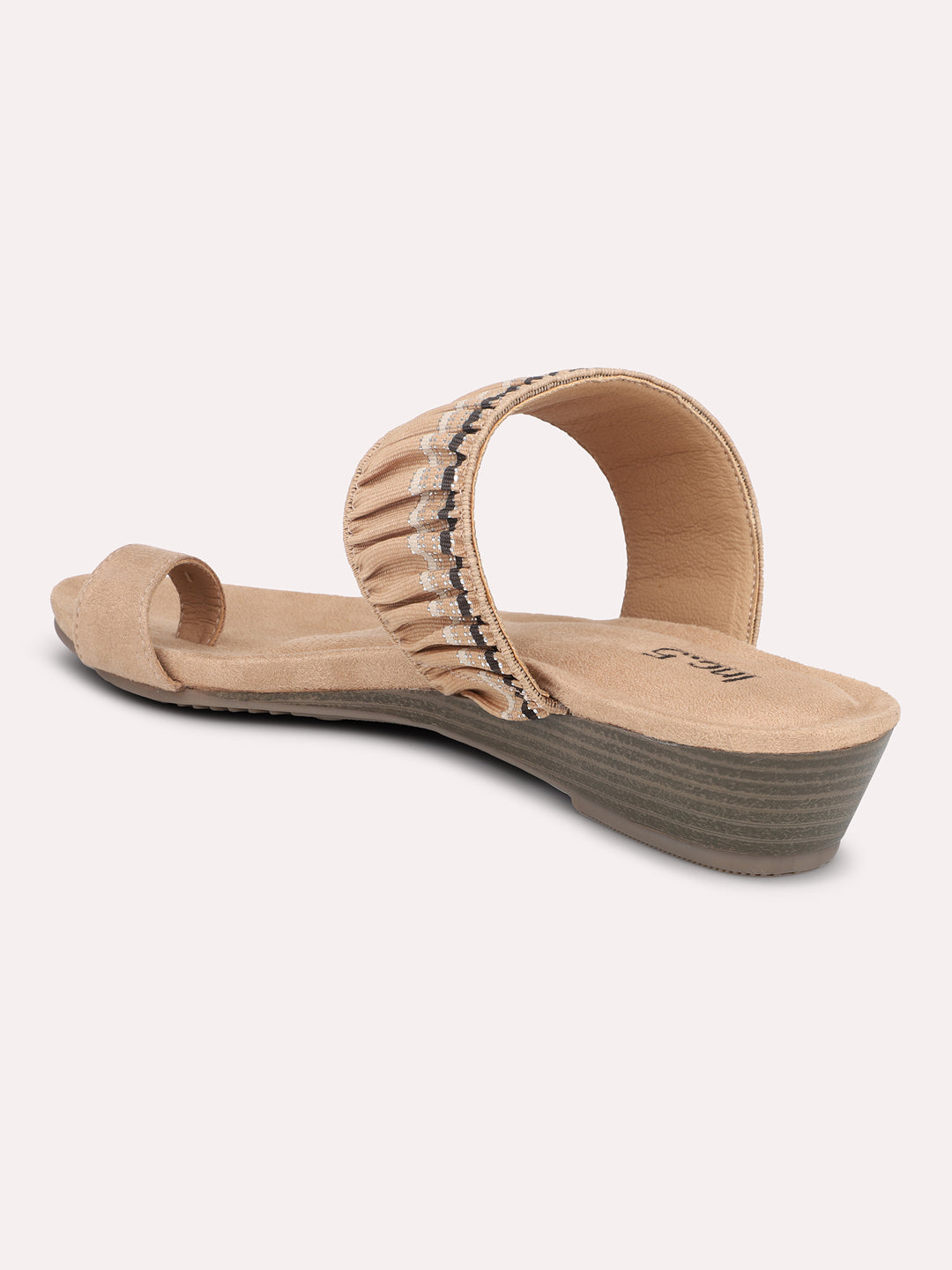 Women Beige-Coloured Textured One-Toe Wedge Heels