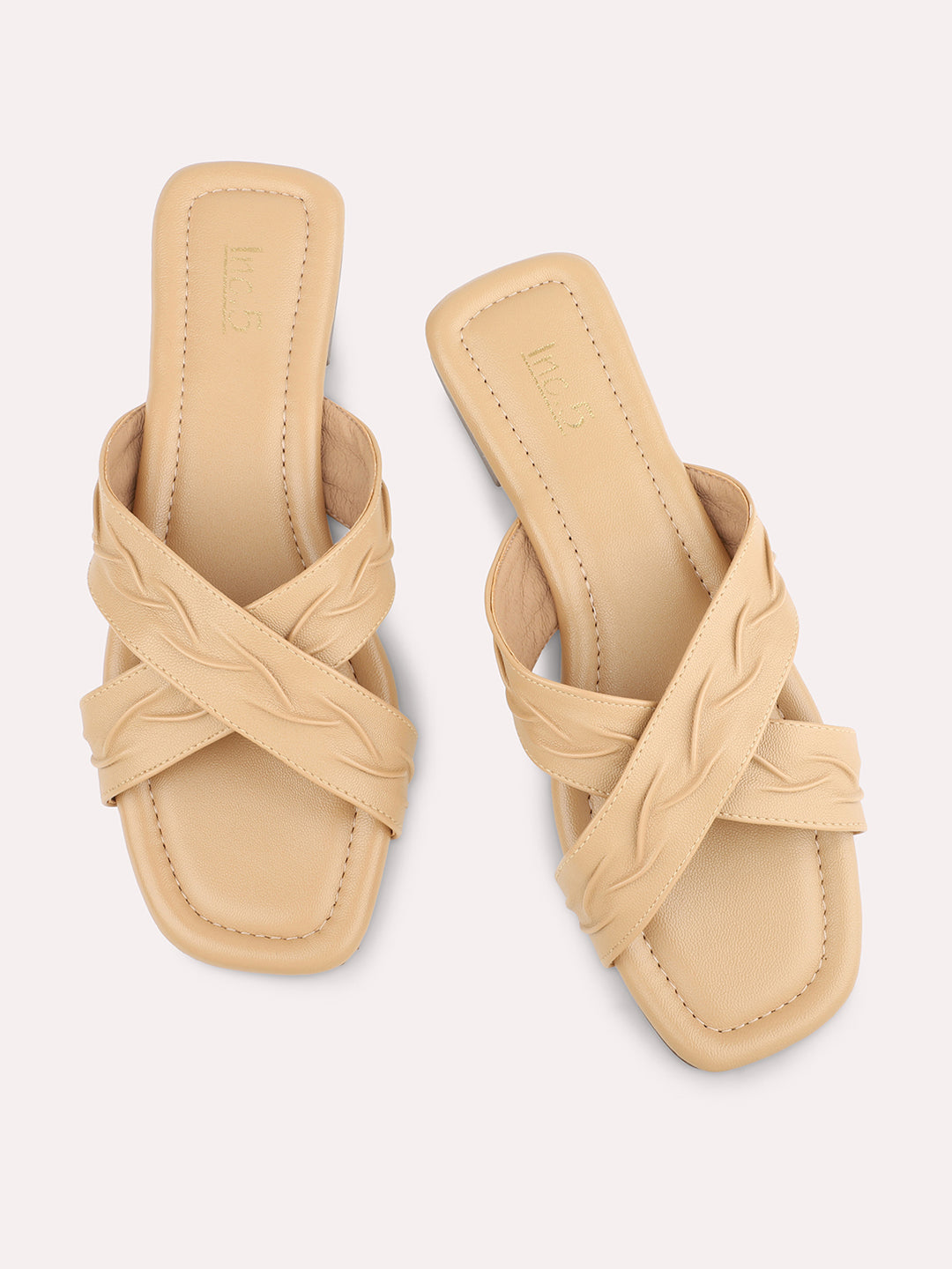Women Beige Textured Open Toe Flats