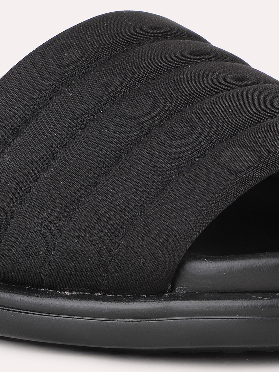 Product description:-These black slip-on sandals feature an open-toe design, offering a casual yet stylish option for everyday wear. |