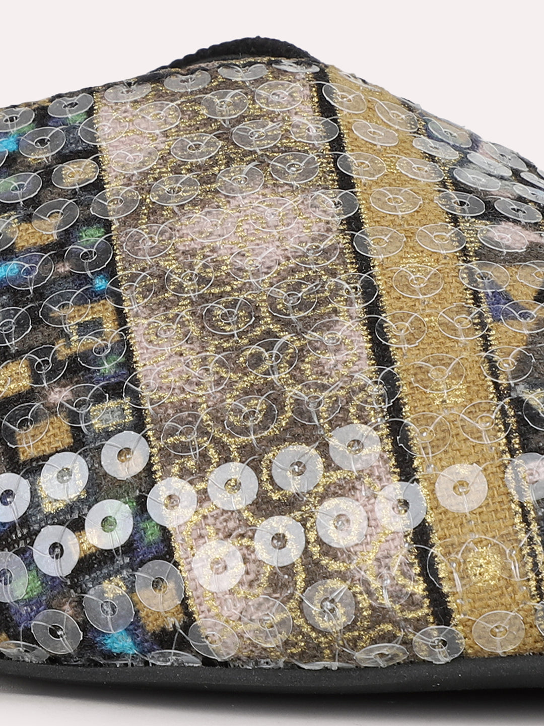 Women Black Casual Printed Pointed Toe Slip-On Flats