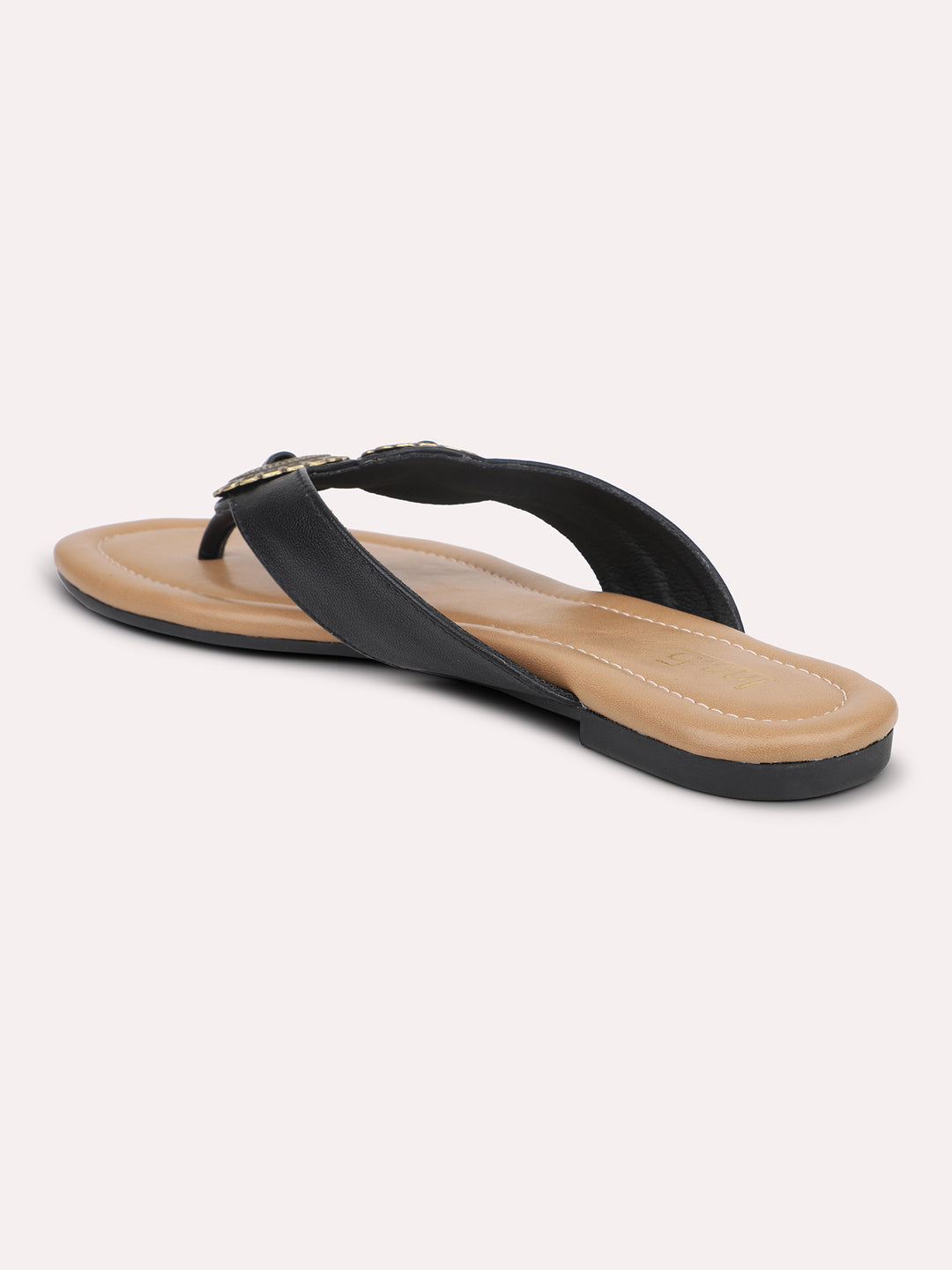 Women Black Open Toe Flats with Embellished Detail