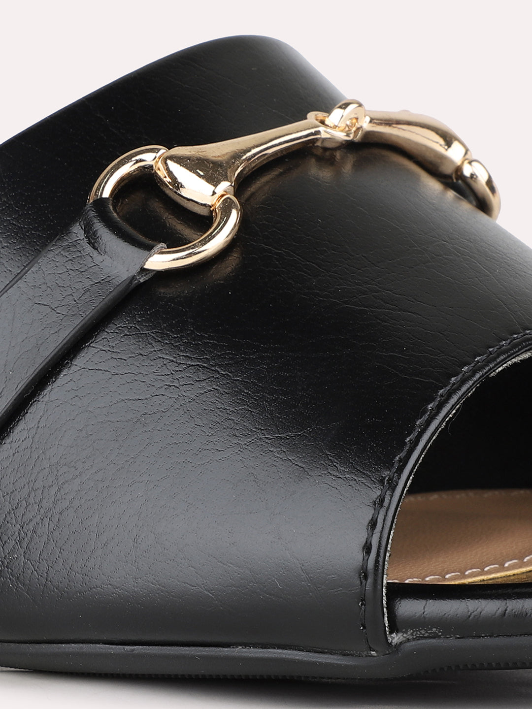 Women Black Party Wear Solid Pattern Square Toe Block Heel Sandals