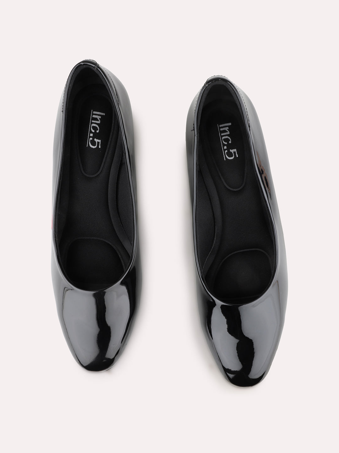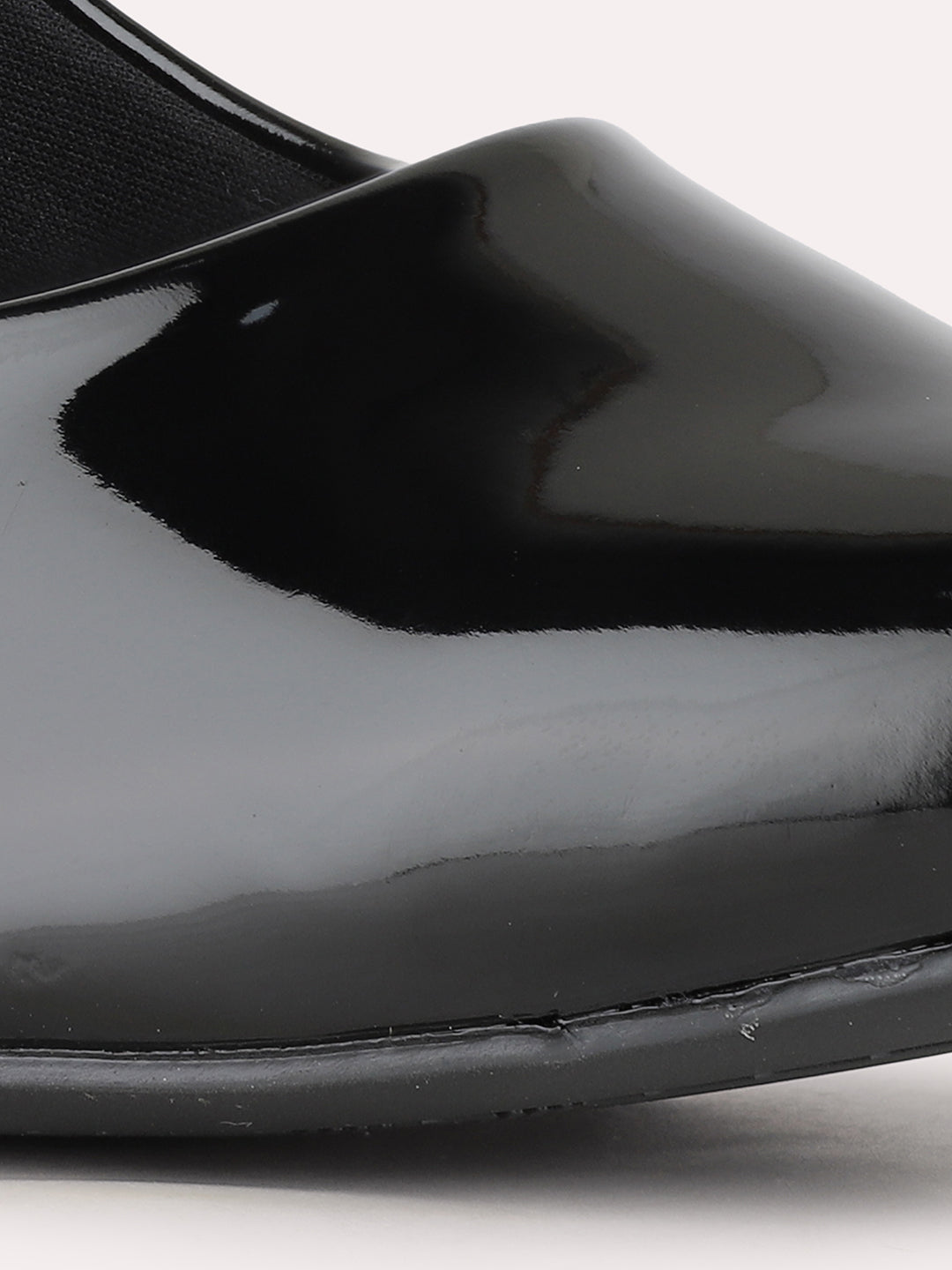 Women Black Party Wear Solid Pointed Toe Block Heel Pumps