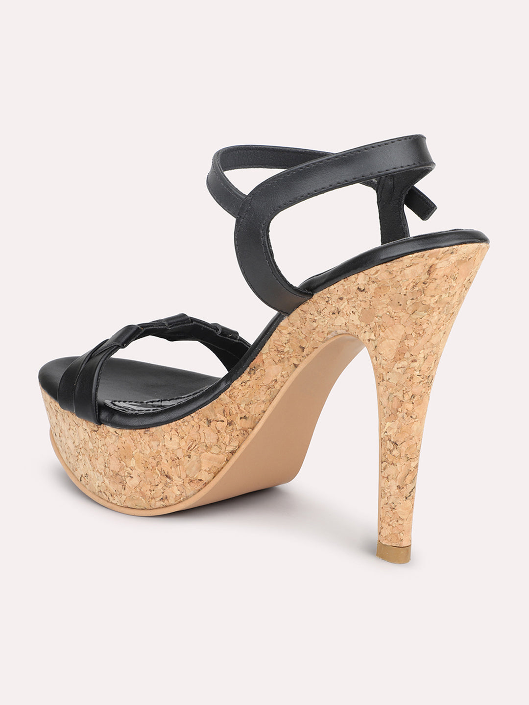 Women Black Textured Platform Heels