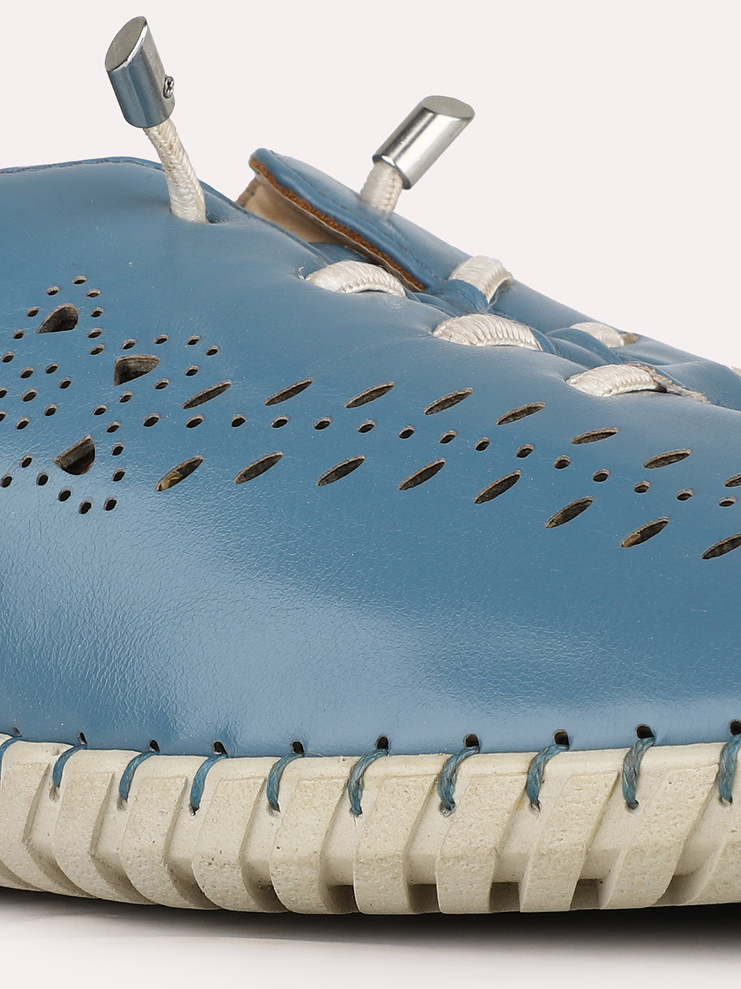 Women Blue Casual Solid Round Toe Lace-up Shoes