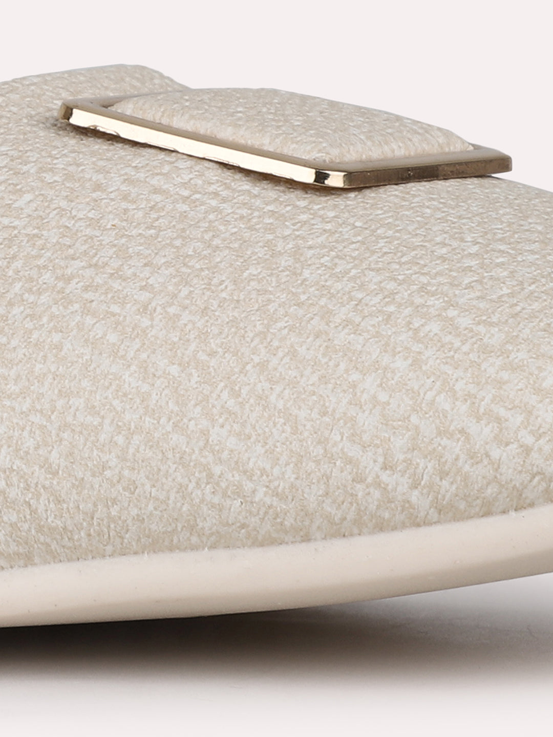 Women Cream Party Wear Solid Round Toe Ballerinas