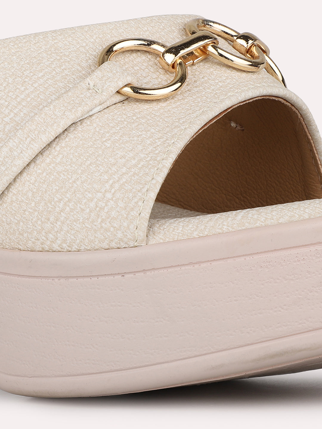 Women Cream Party Wear Solid Round Toe Platform Heel Sandals