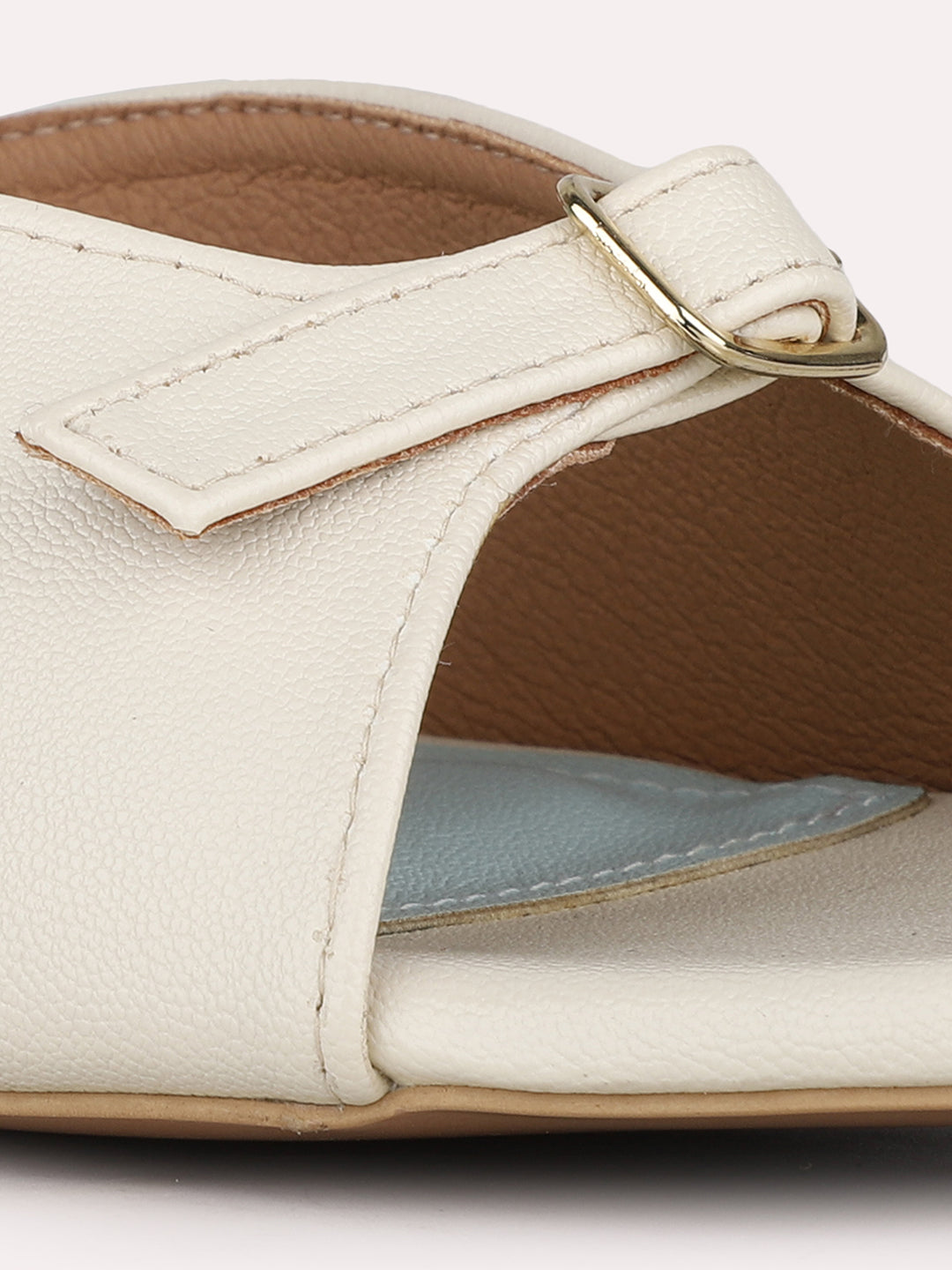 Women Cream Party Wear Solid Square Toe Kitten Heel Sandals