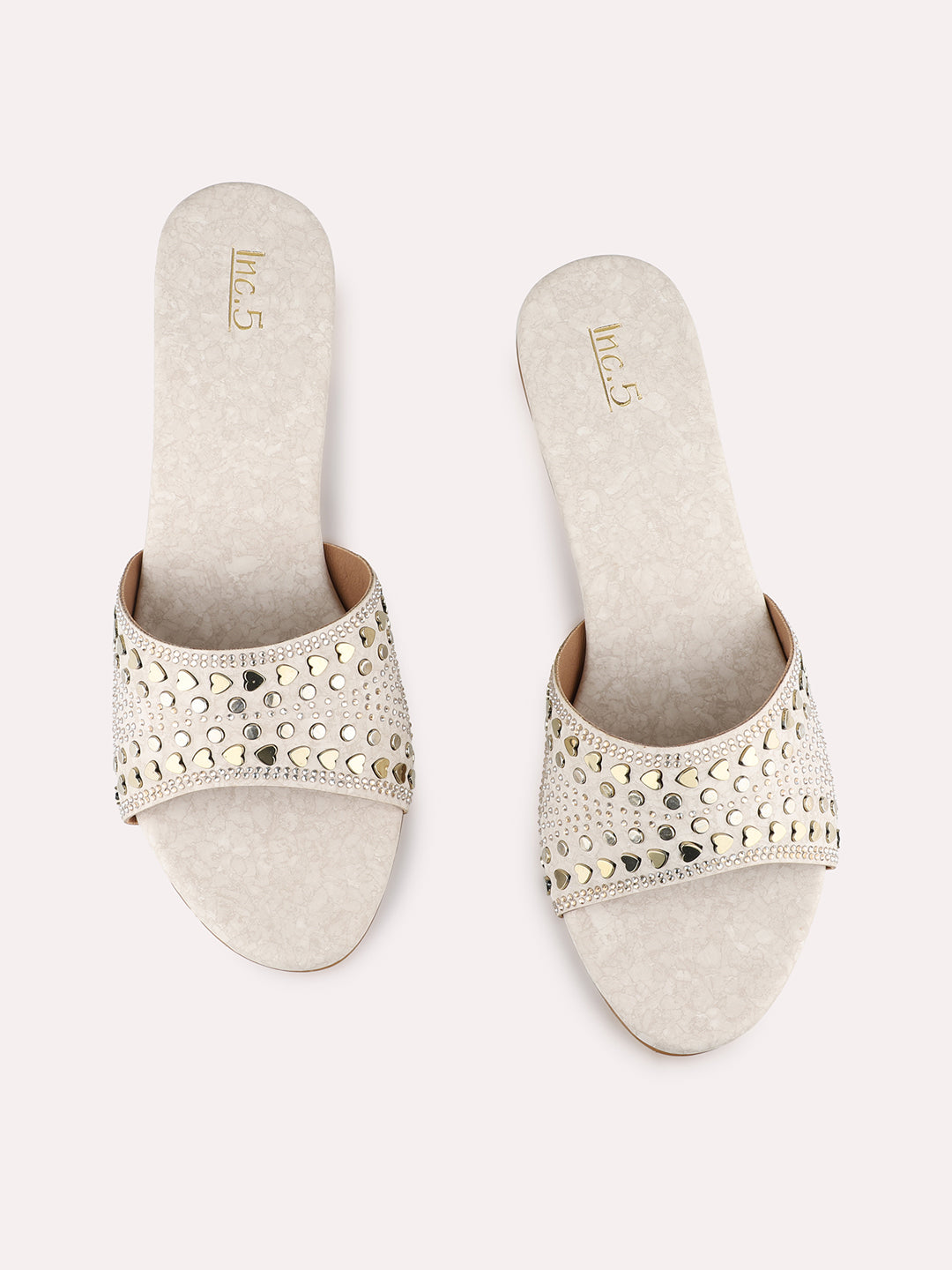 Product description:- Glamorous and traditional, these golden ethnic block heels feature sparkling embellishments and a round toe—ideal for weddings and festive wear. |