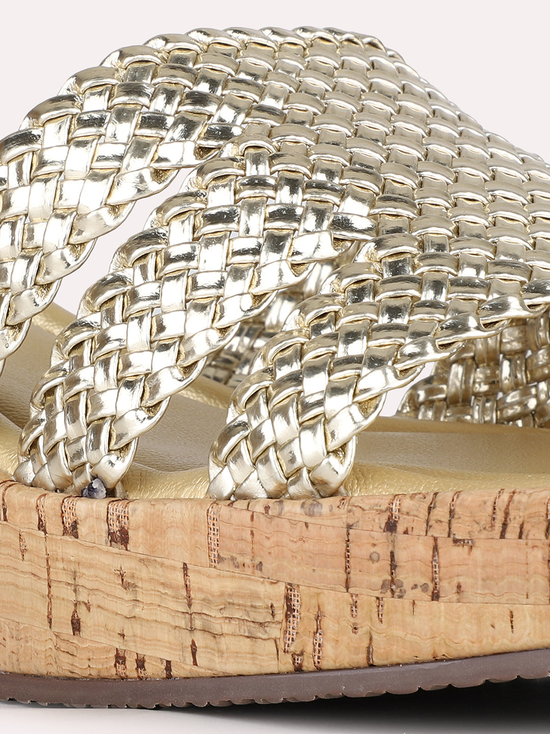 Women Golden Ethnic Solid Round Toe Wedge Heel Sandals