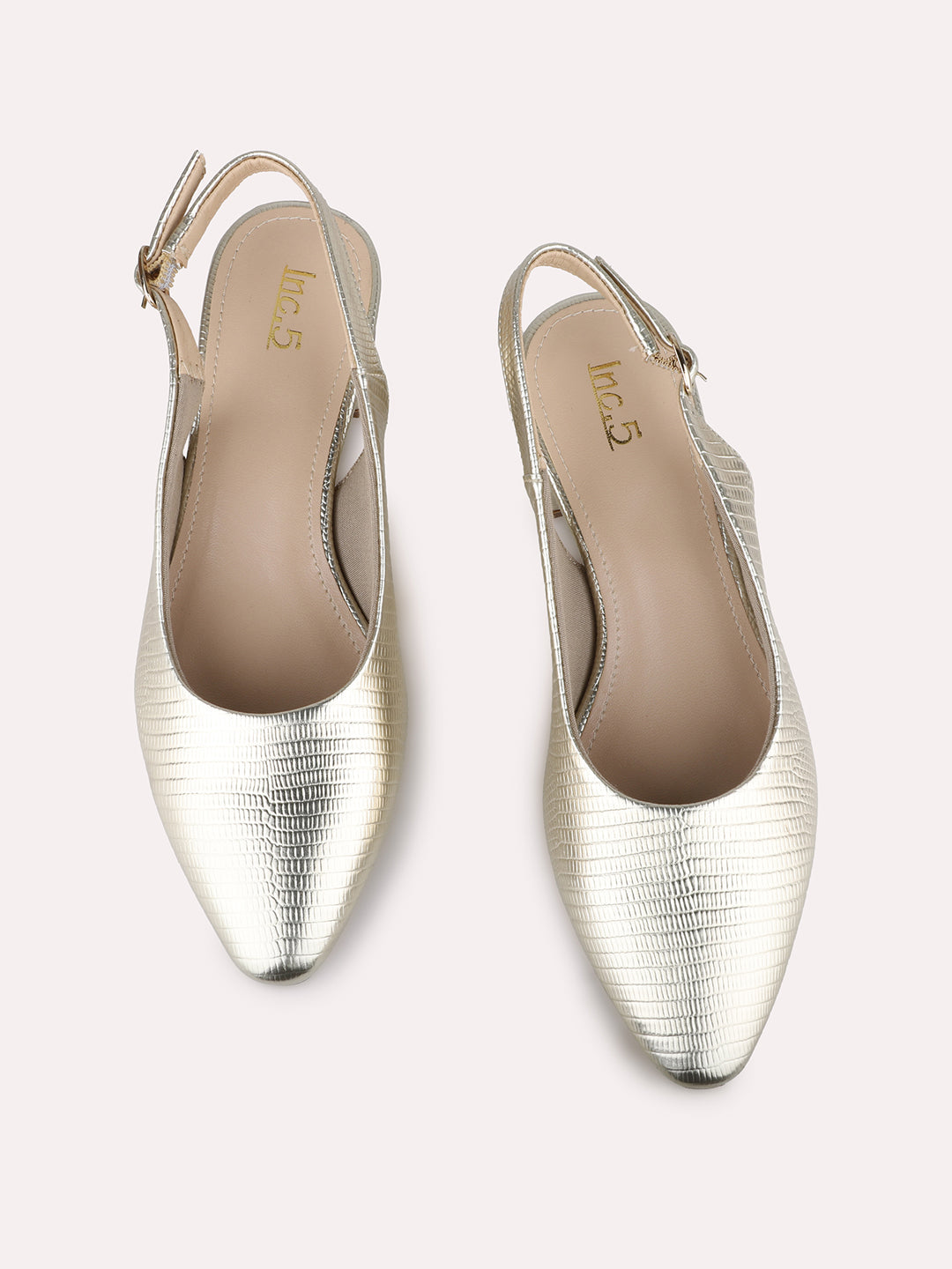 Women Golden Party Wear Solid Pointed Toe Pump Shoes