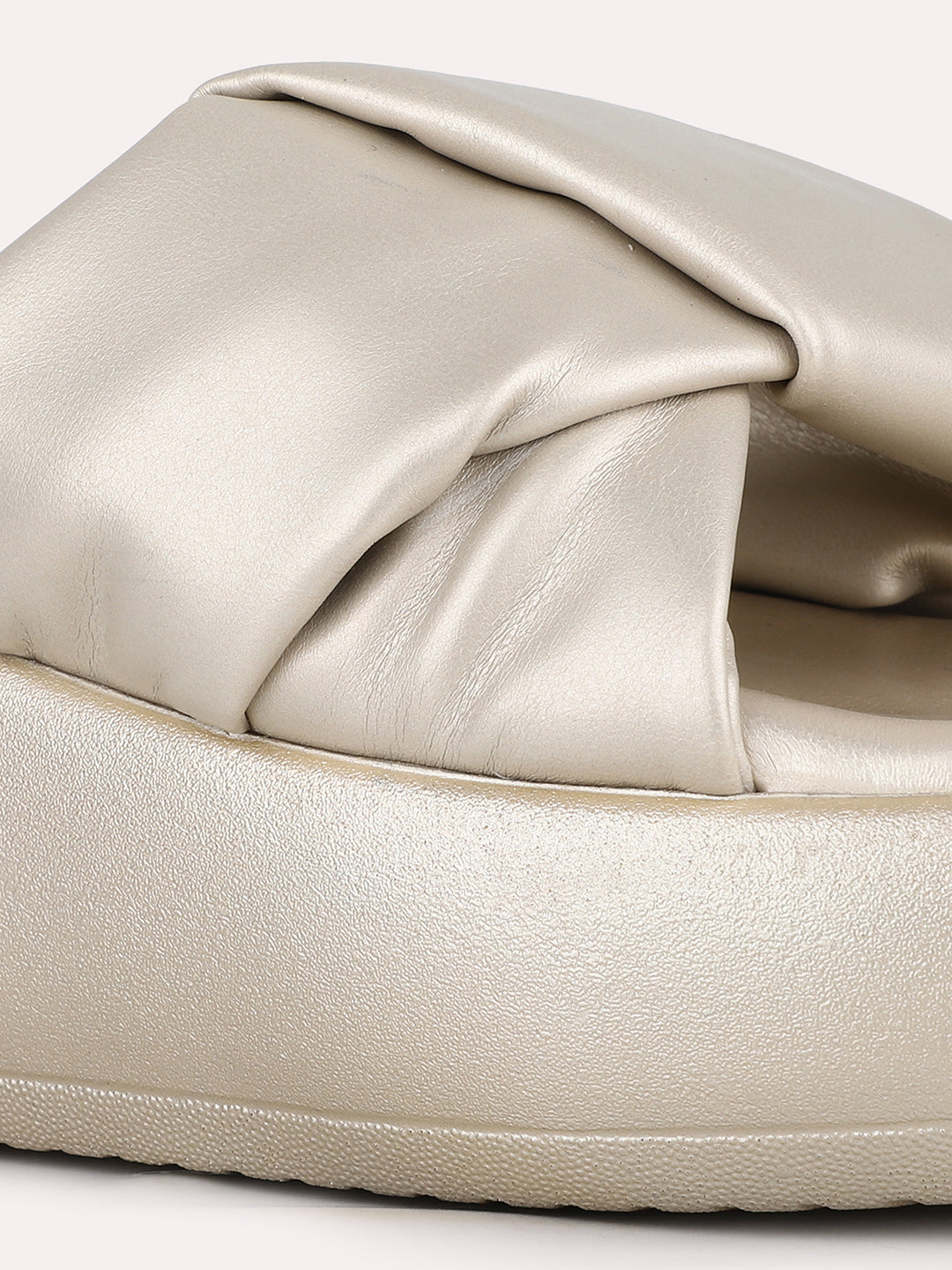 Women Golden Party Wear Solid Pattern Round Toe Wedge Heels