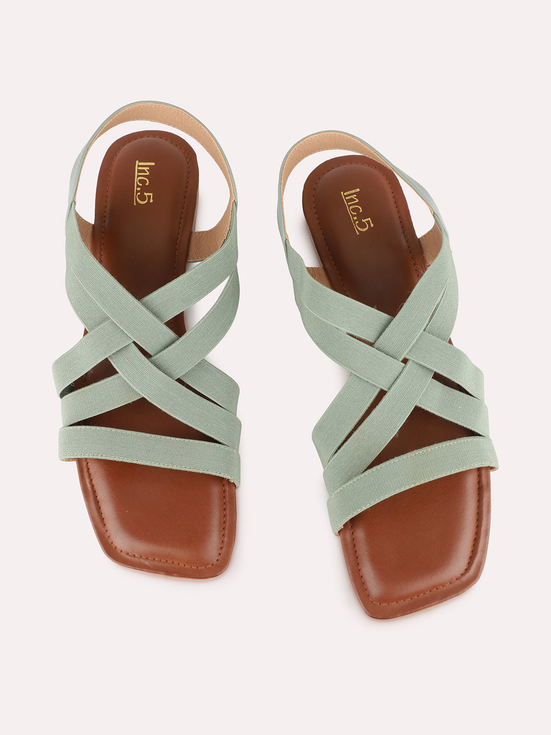 Women Green Party Wear Solid Open Toe Flat Sandals