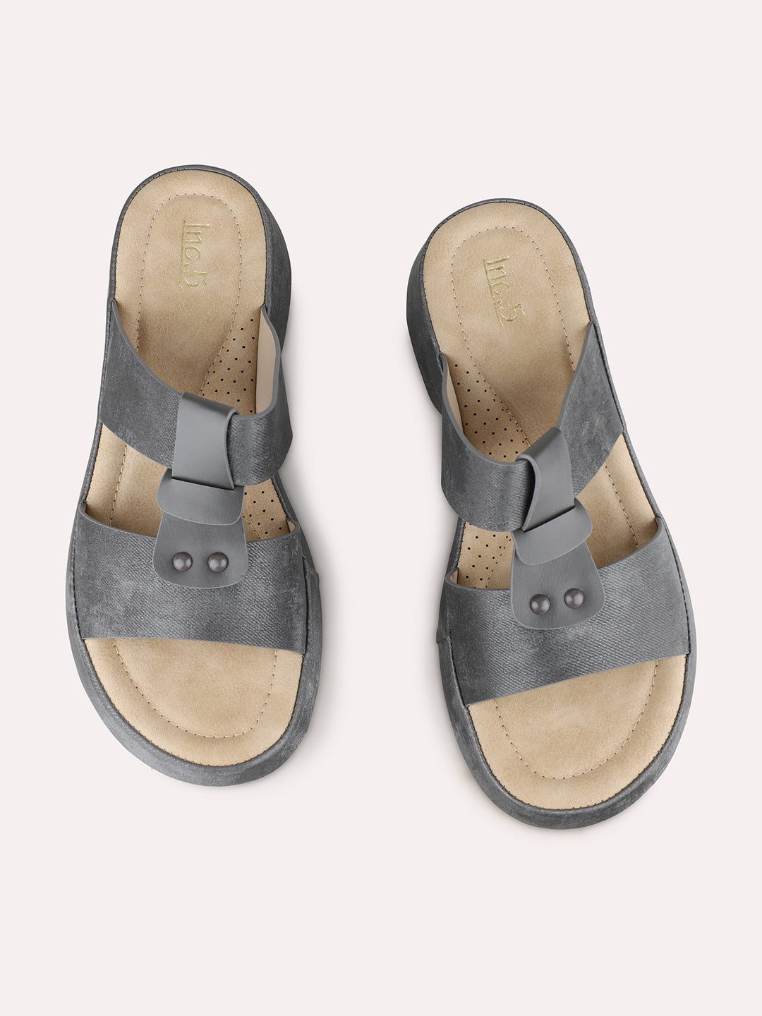 Women Grey Party Wear Solid Pointed Platform Heel Sandals