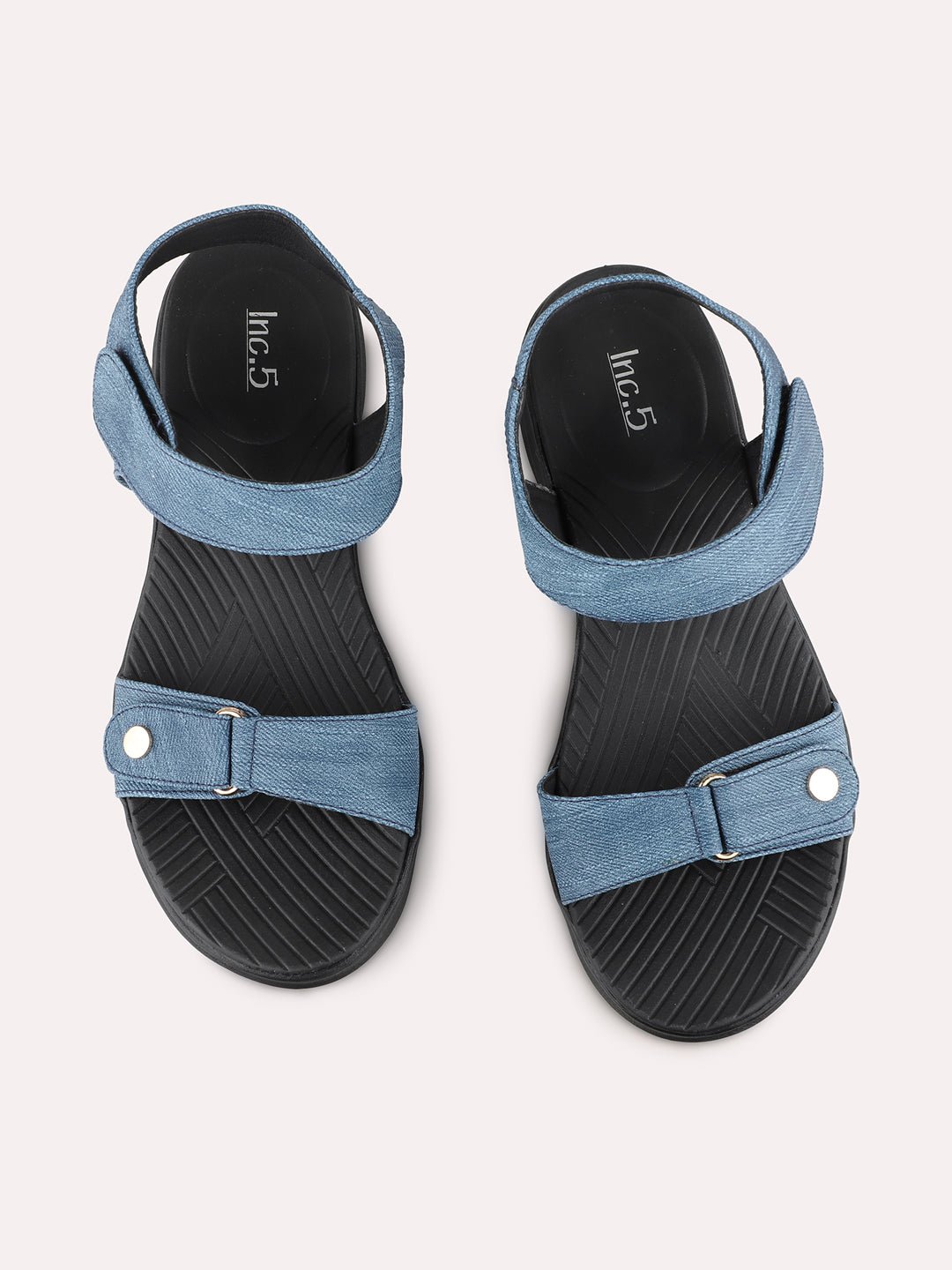 Women Navy Casual Solid Round Toe Wedge Heel Sandals