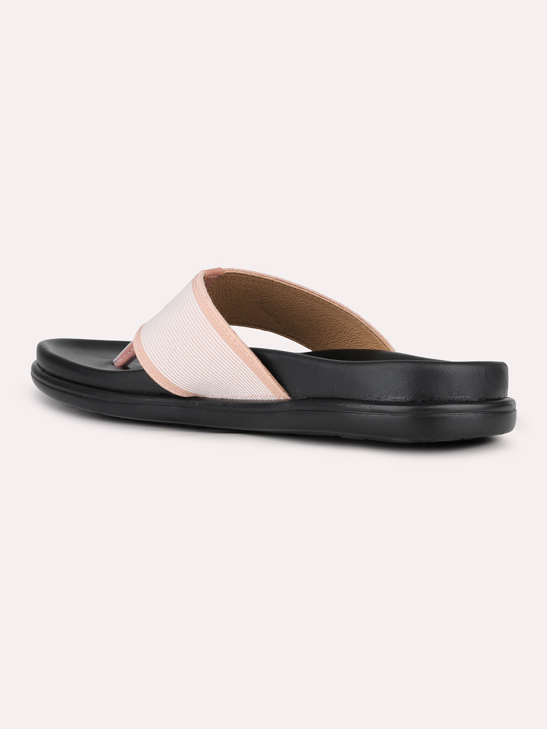 Women Peach Casual Solid T-Strap Slip-On Flat Sandals