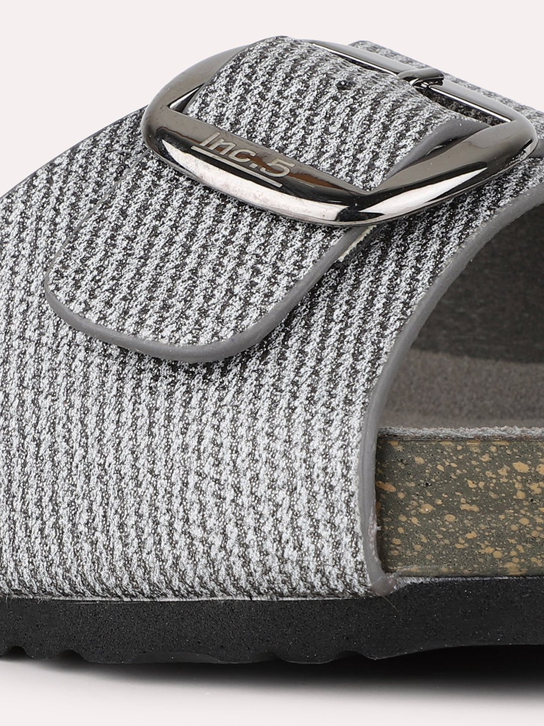 Women Pewter Casual Printed Round Toe Open Toe Slip-On Flats