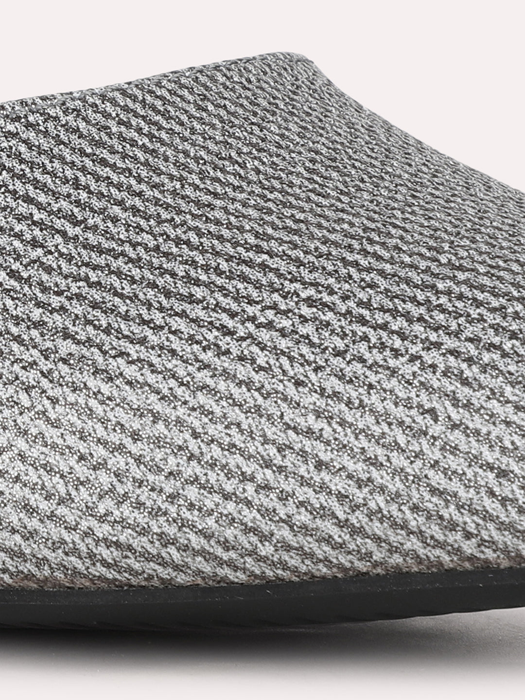 Women Pewter Party Wear Solid Pointed Toe Kitten Heel Mules