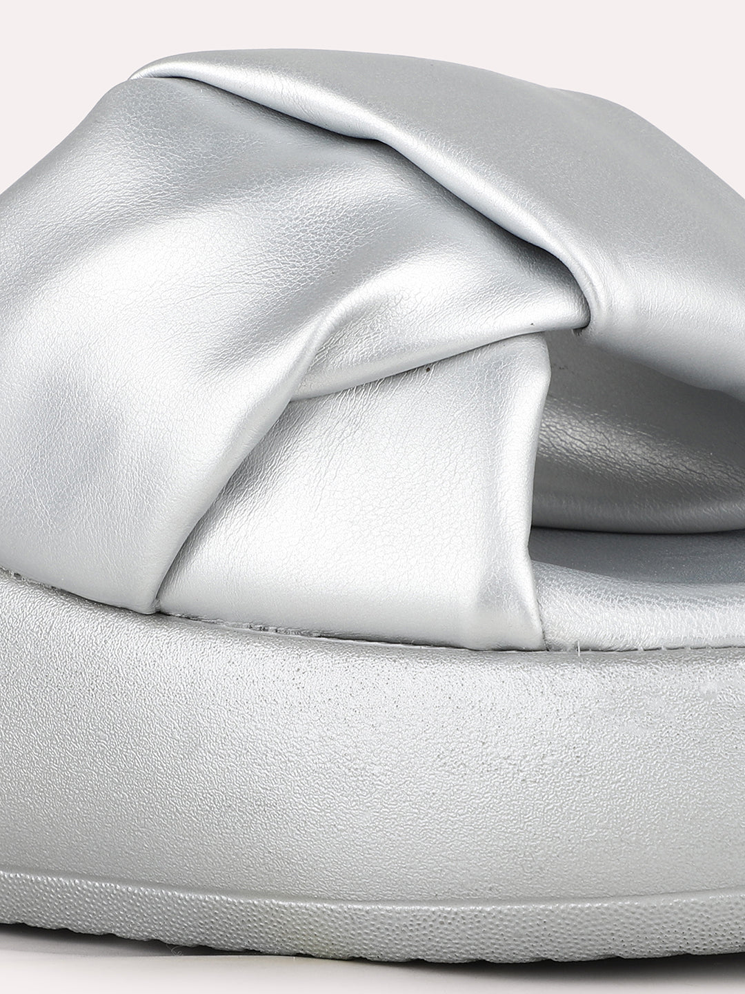Women Silver Party Wear Solid Round Toe Wedge Heel Sandals
