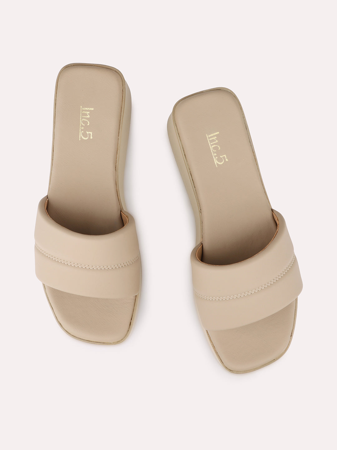 Product description:-Step out in style with these chic Womens Beige Casual Open toe Flatform Heel Mules by Inc.5. The perfect blend of comfort and fashion, these mules are versatile and on-trend. Perfect for any casual outing. |