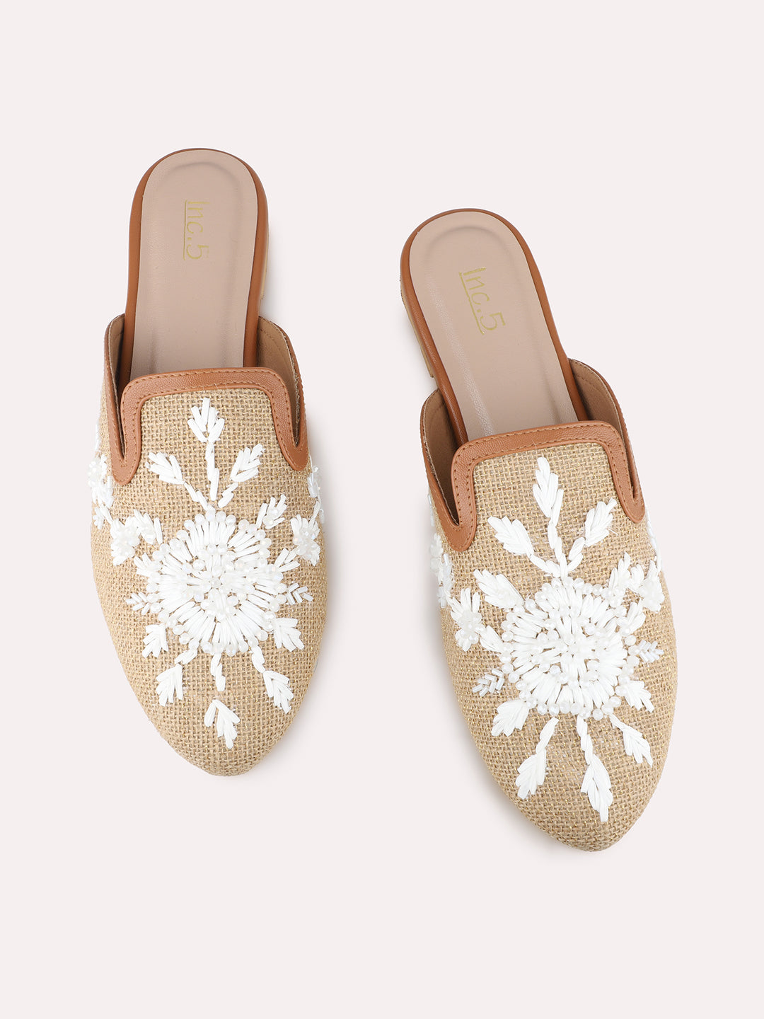 Product description:-Stay trendy with these beige printed toe mules. Their flat design ensures comfort while the printed details add a touch of uniqueness to your casual outfit. |