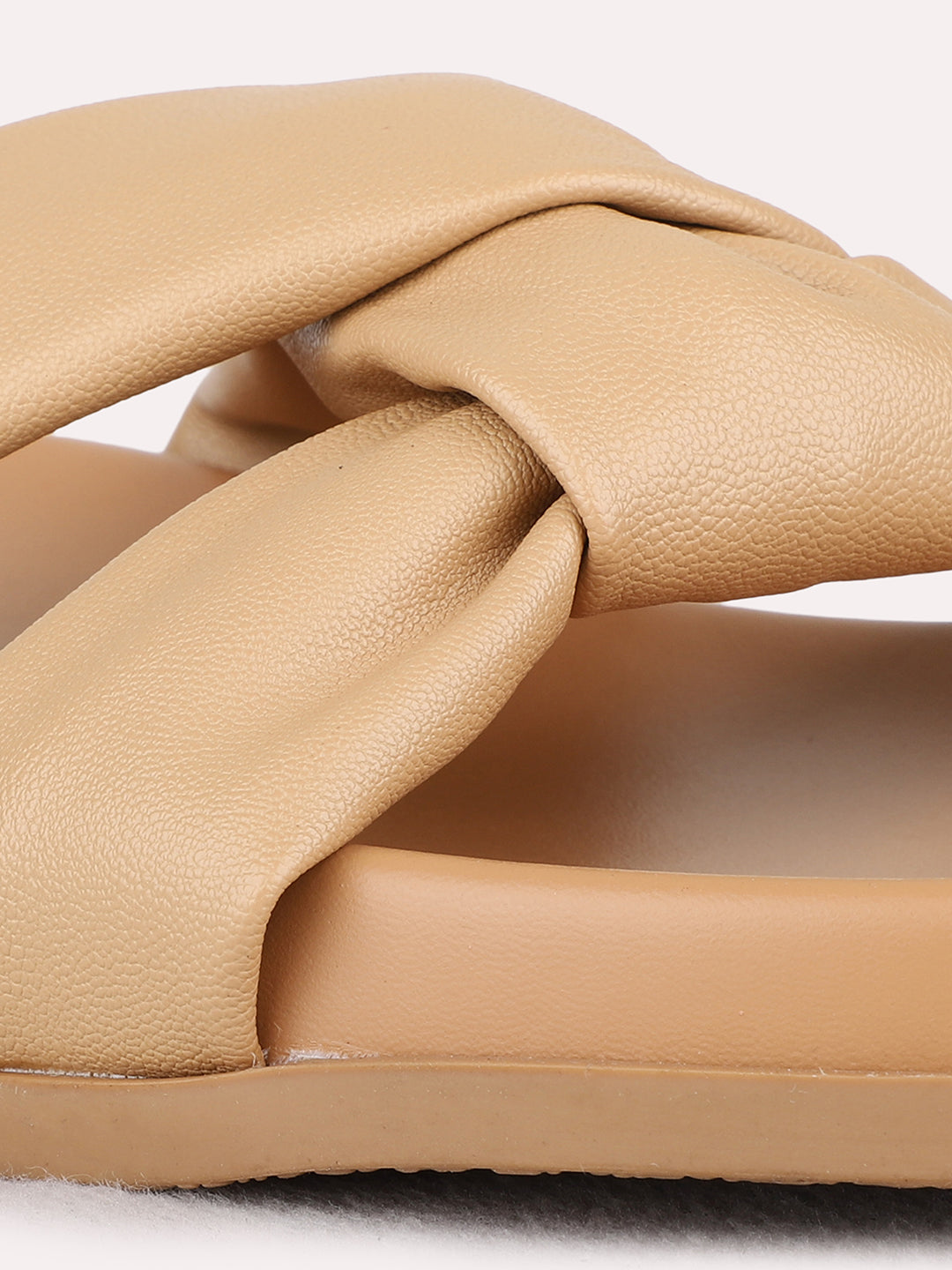 Womens Beige Casual Solid Open Toe Flat Sandals