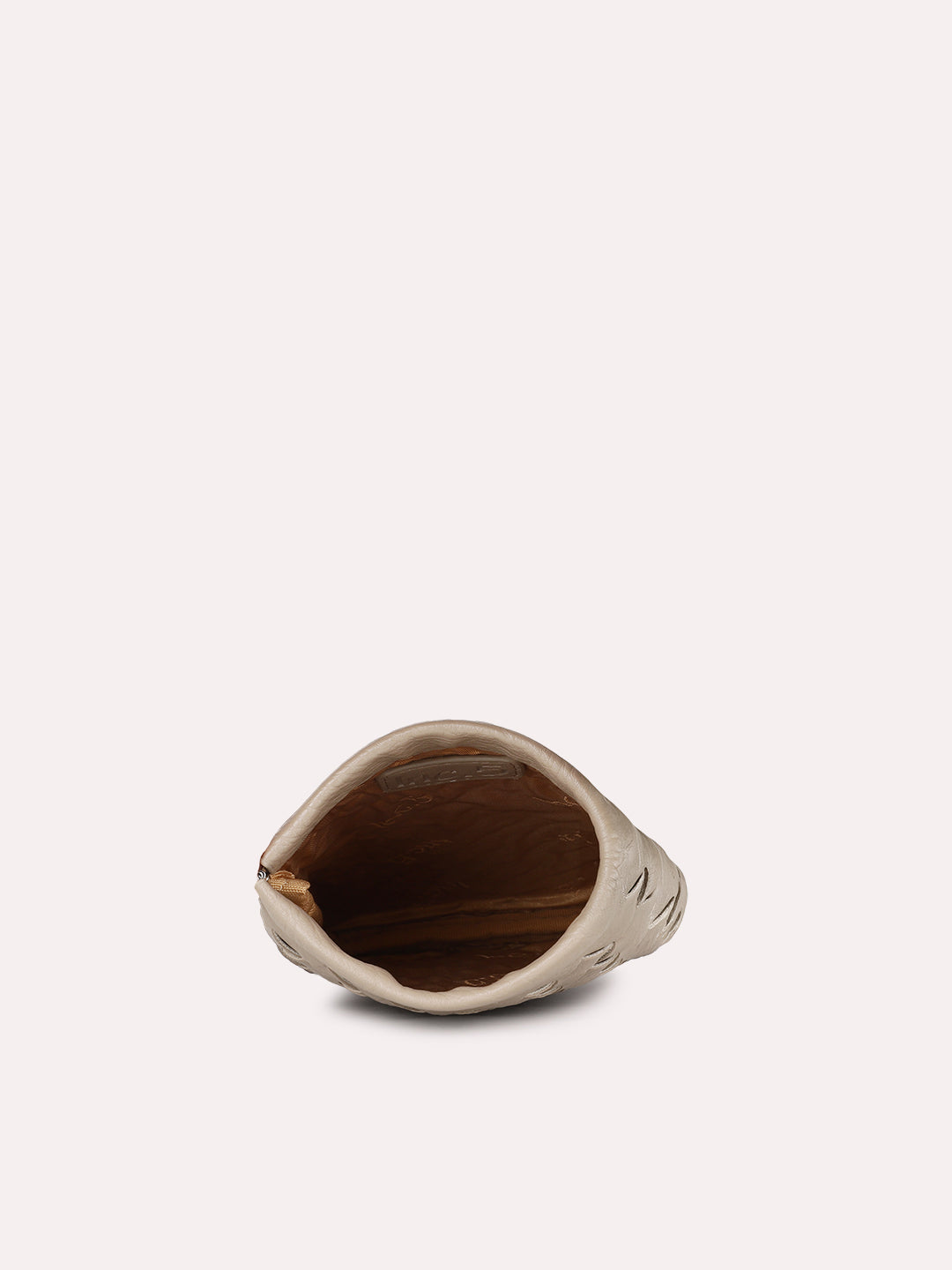 Womens Beige Casual Textured Pattern Sling Bag With Twist Lock