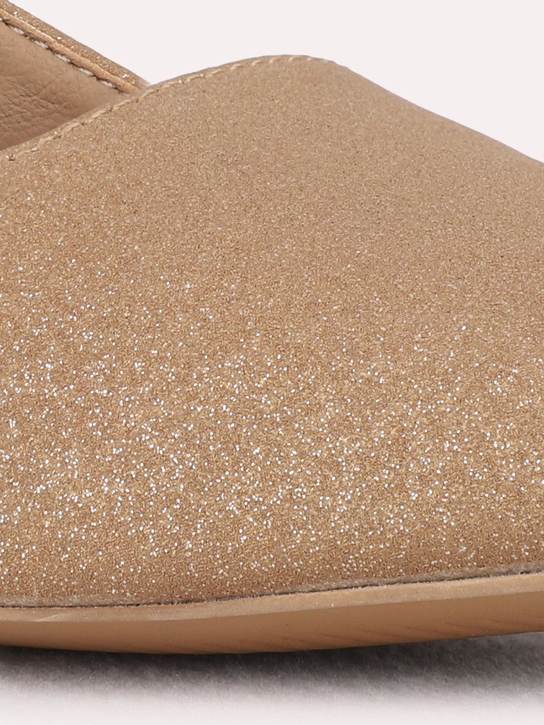 Product description:-Beige ethnic block heel mules with narrow toe styling and solid design. Comfortable yet elegant, ideal for festive occasions and ethnic outfits. |