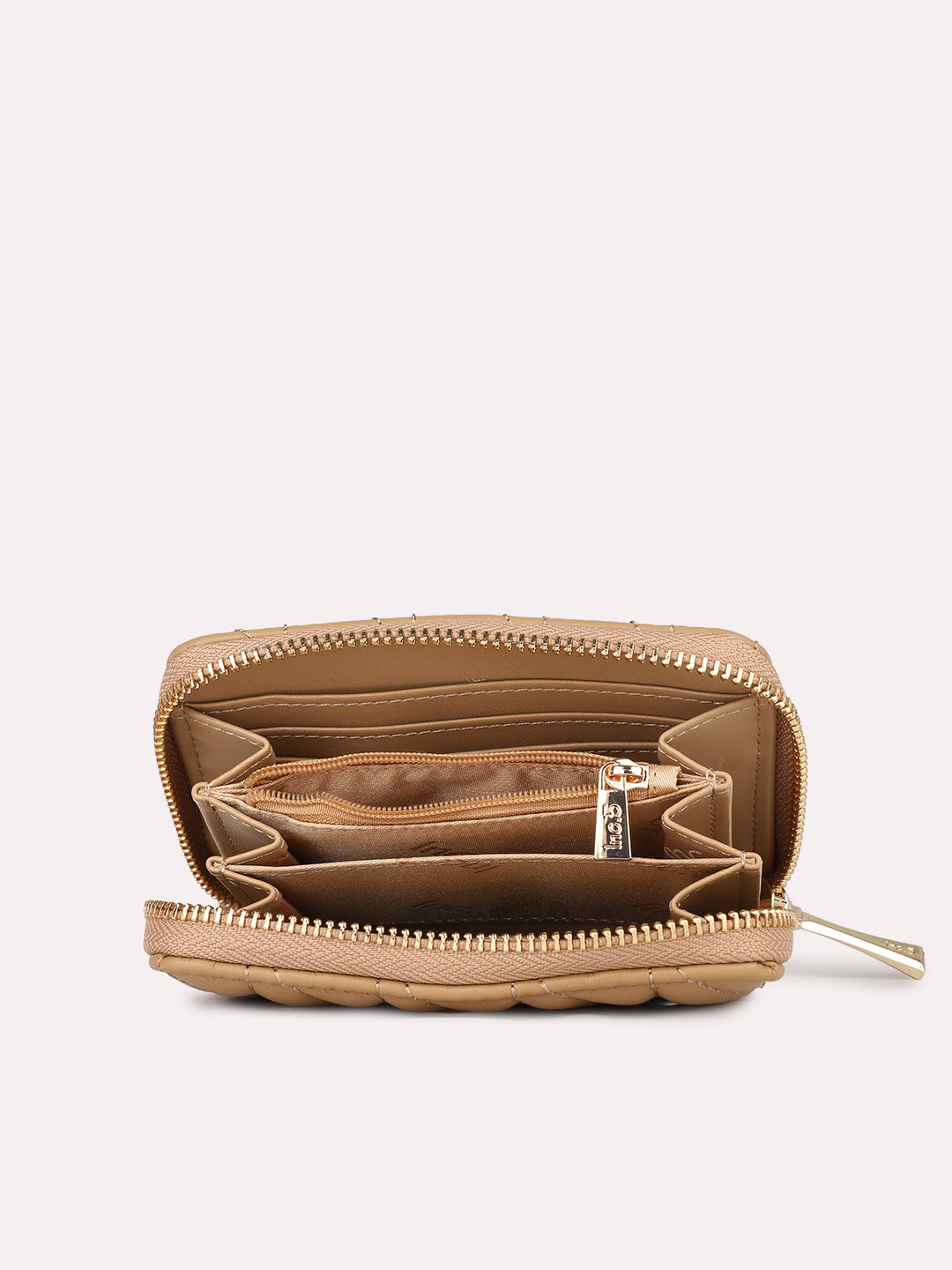 Womens Beige Party Textured Pattern Wallet With Zip Lock