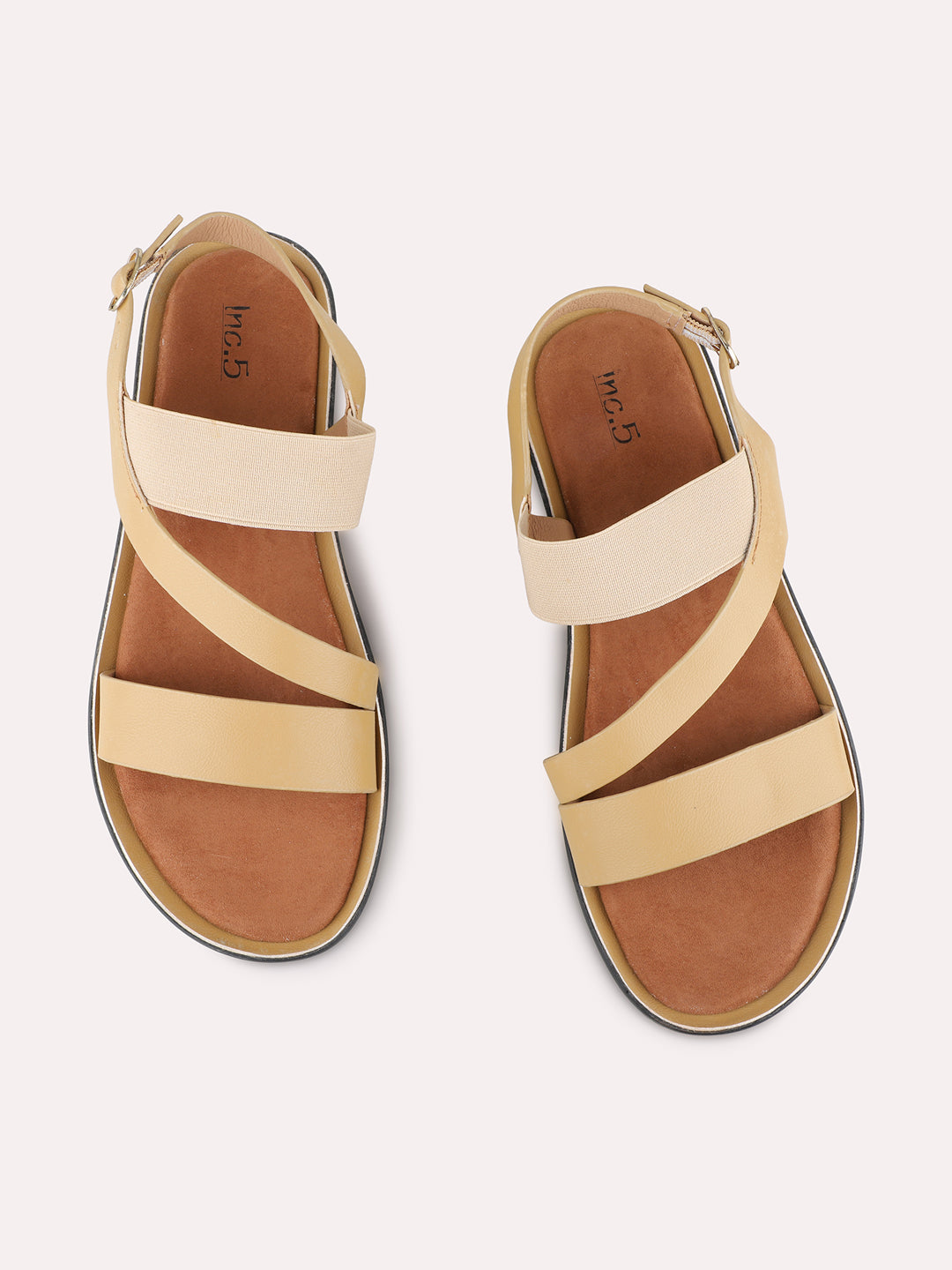 Womens Beige Party Wear Solid Round Toe Wedge Heel Sandals