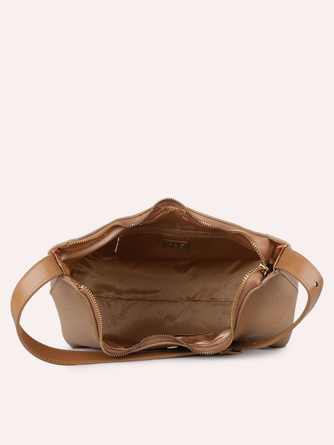 Womens Beige Shoulder Bag With Zip Lock Casual