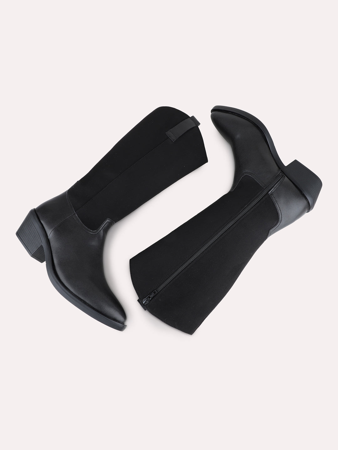 Product description:-Black narrow toe block heel boots offer sleek and comfortable everyday style. Ideal for casual outings, work, or semi-formal wear during cooler seasons. |