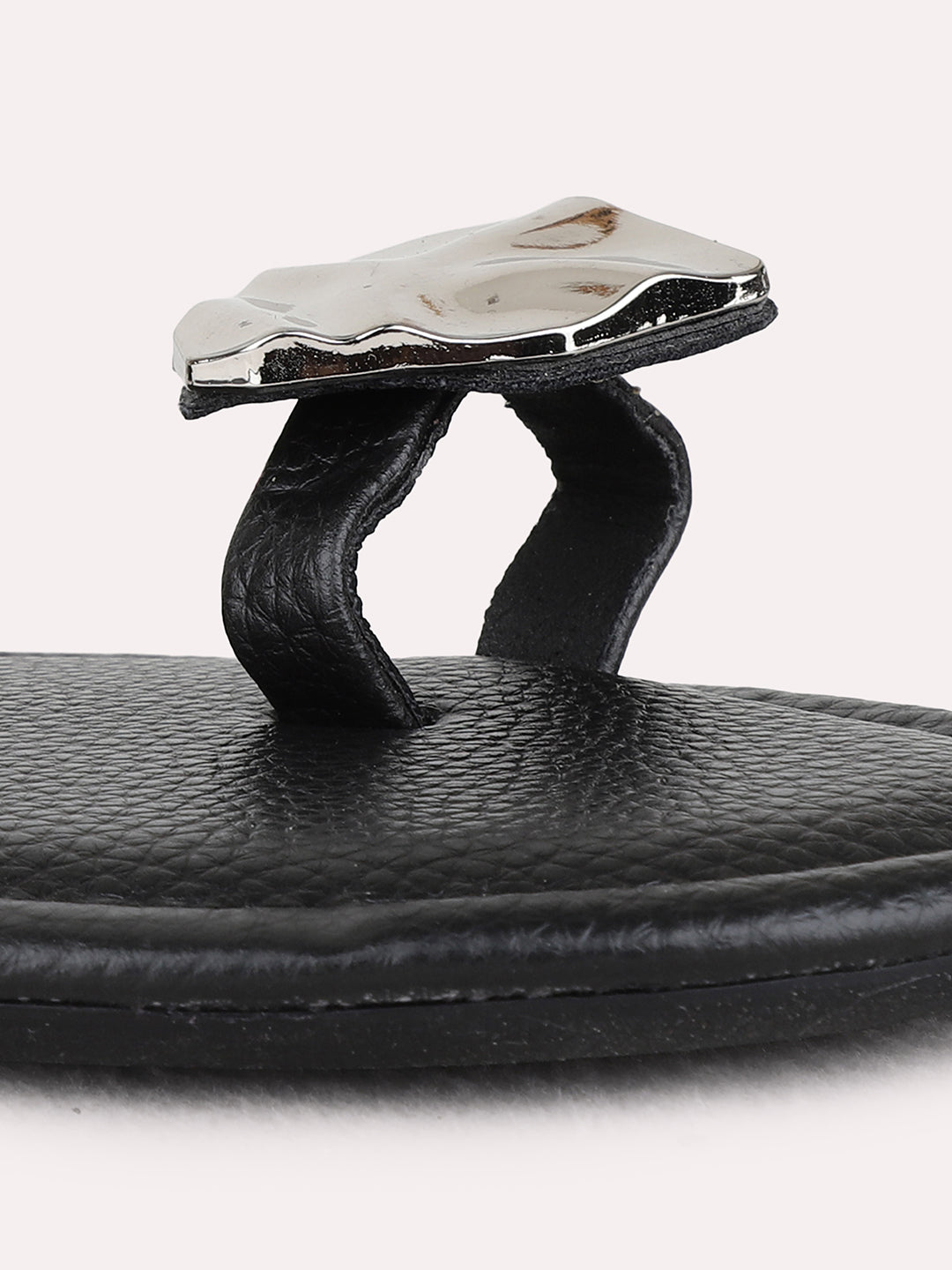 Womens Black Casual Solid One Toe Flat Slip-on Sandals